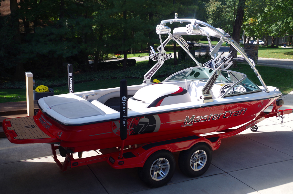 The retractable TOWER is loaded with factory Mastercraft cans and JL Audio tower speakers, wakeboard racks, tower stabilizers, mirror and bimini top.